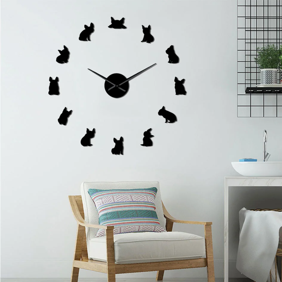 Настенные часы в стиле французского бульдога, домашний декор, регулируемые акриловые 3D часы сделай сам, украшение для щенка, зоомагазина, зеркала, наклейка на стену