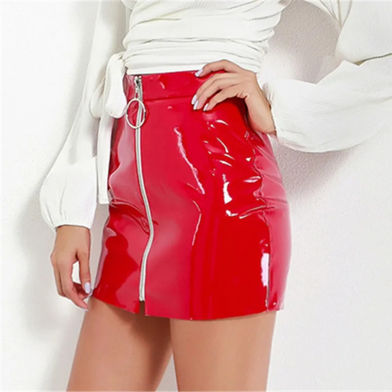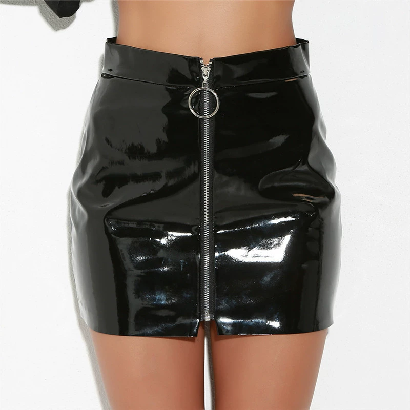 Осенняя Женская мини-юбка выше колена из белой искусственной кожи, зимняя женская облегающая короткая черная юбка с завышенной талией и молнией спереди DS368