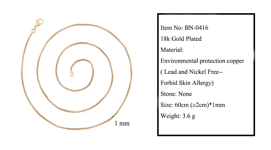 XP Jewelry-( 60 см * 1 мм) 18k позолоченная коробка цепи ожерелья для мужчин женщин модные ювелирные изделия без никеля