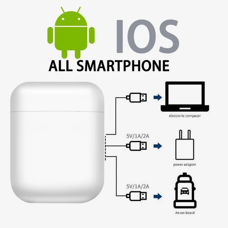 Tws-стереонаушники i12 с поддержкой Bluetooth 5,0 и зарядным футляром