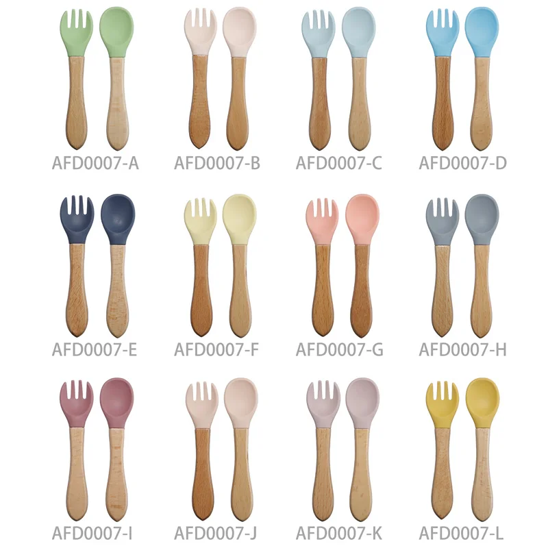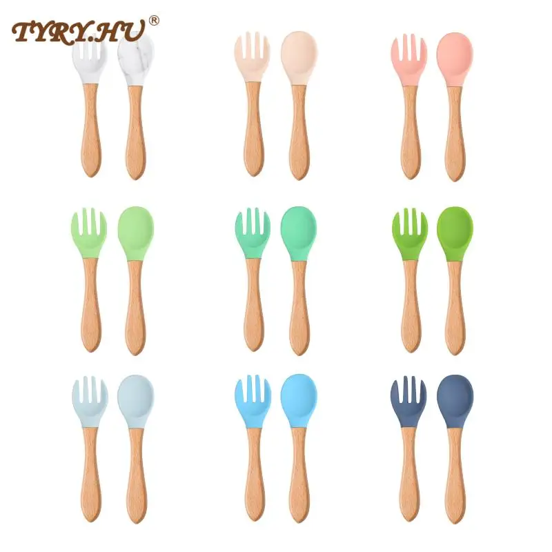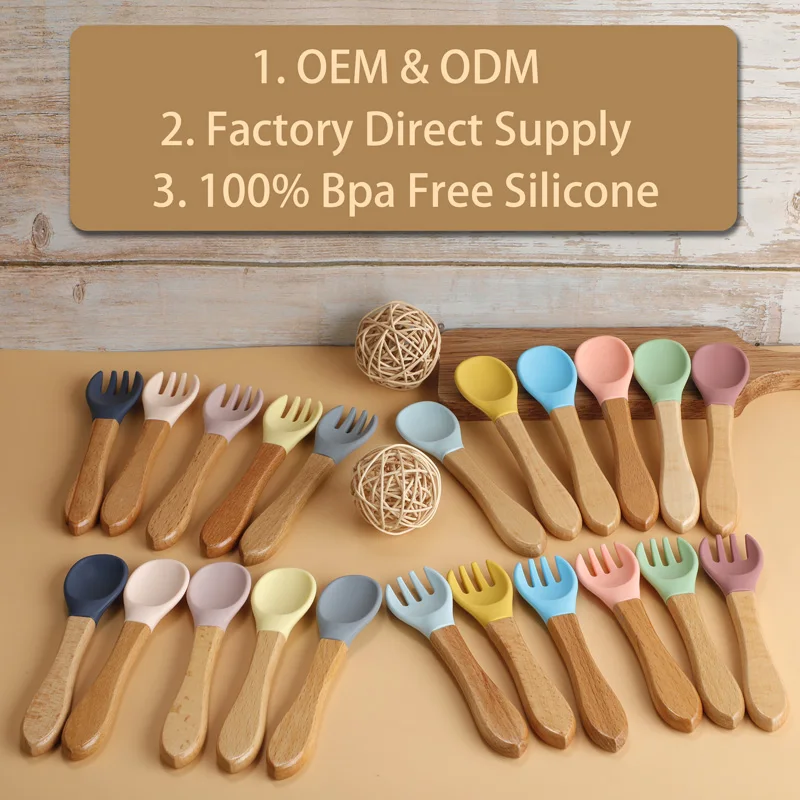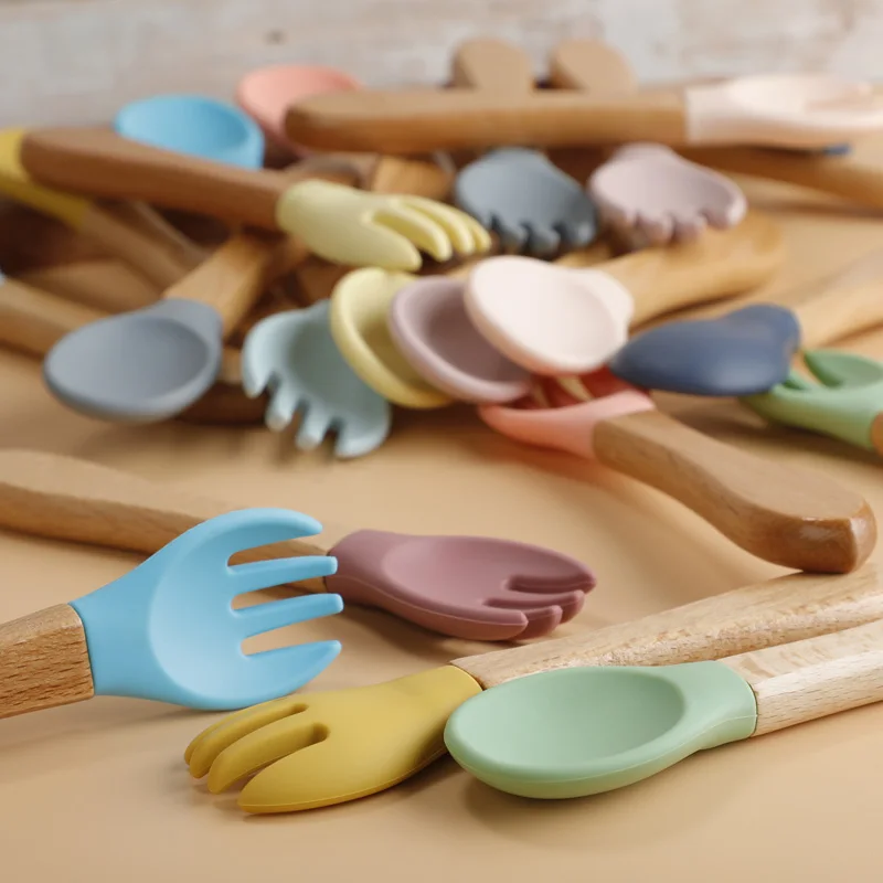 10 шт., силиконовые ложки и вилки с деревянной ручкой