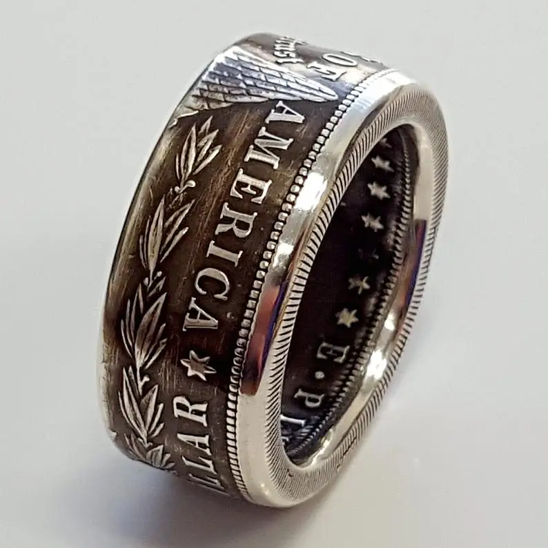 Мужские серебряные кольца в виде доллара Моргана, цельные винтажные парные кольца в стиле панк, с монетами и листьями, модные ювелирные украшения для вечерние, рождественский подарок