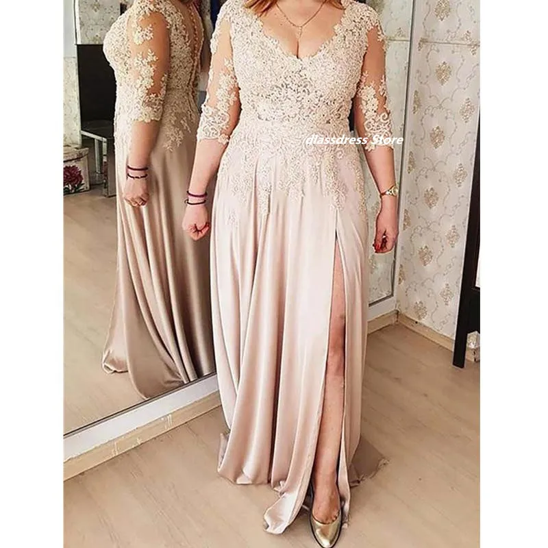 Кружевное шифоновое вечернее платье для матери невесты с длинными р...