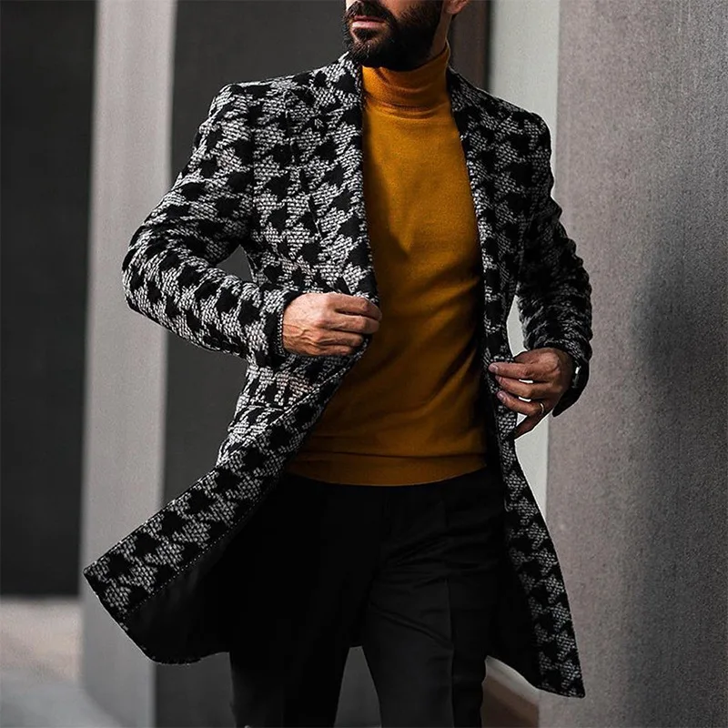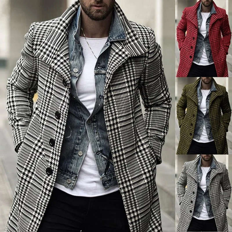 Мужское длинное шерстяное пальто, повседневное двубортное мужское ш...