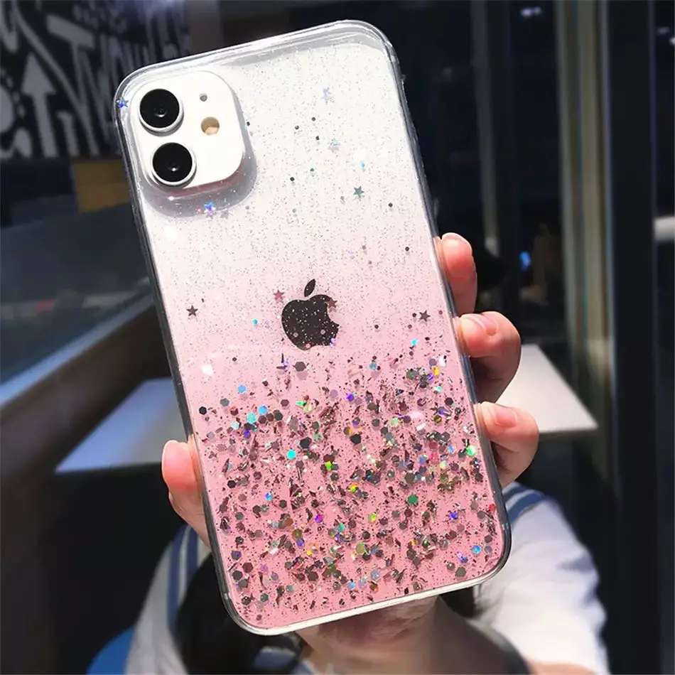 JWMOVE 2022 Прозрачный блестящий чехол для телефона iPhone 13 12 Pro 11 Pro Max XS Max XR X 7 8 Plus 12Mini SE милый градиентный Радужный блестящий