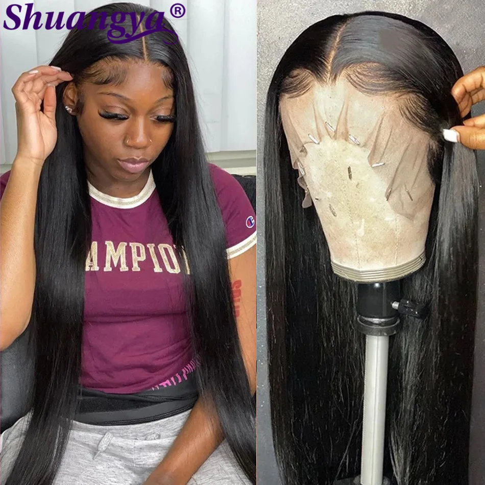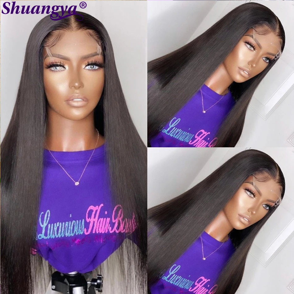 HD 5X5 прямые парики на шнурках, 30 дюймов, бразильские прямые человеческие волосы, парики на шнурках Shuangya Remy, человеческие волосы, парик на фронте шнурка