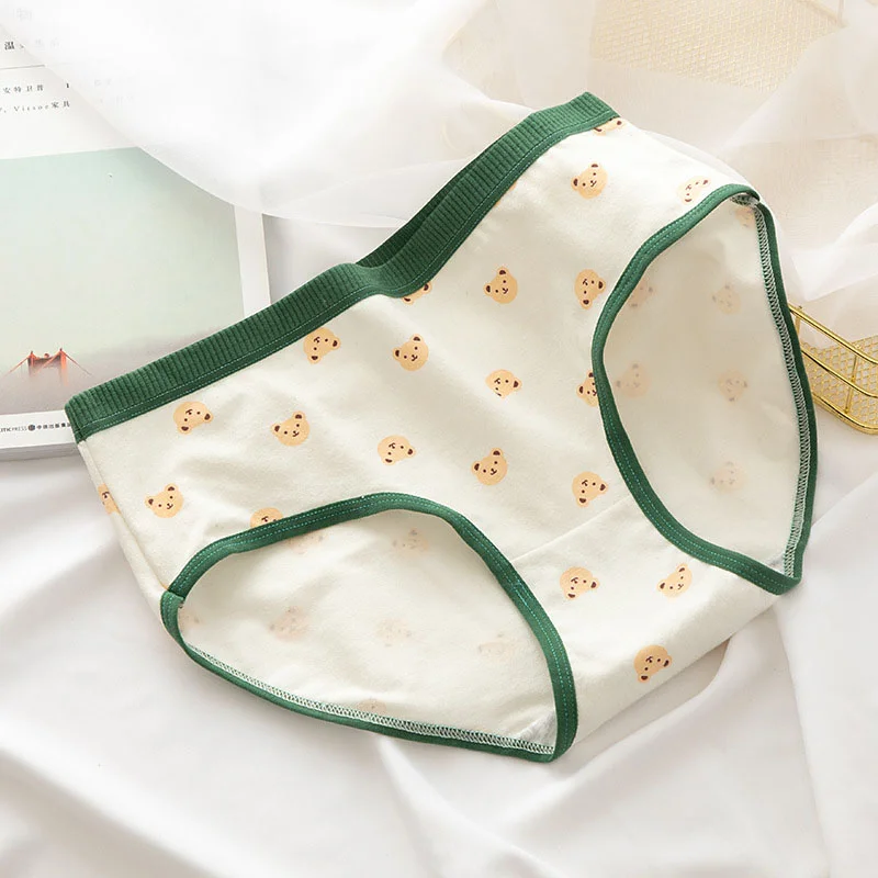 Симпатичные женские трусики с принтом медведей, хлопковое зеленое ж...