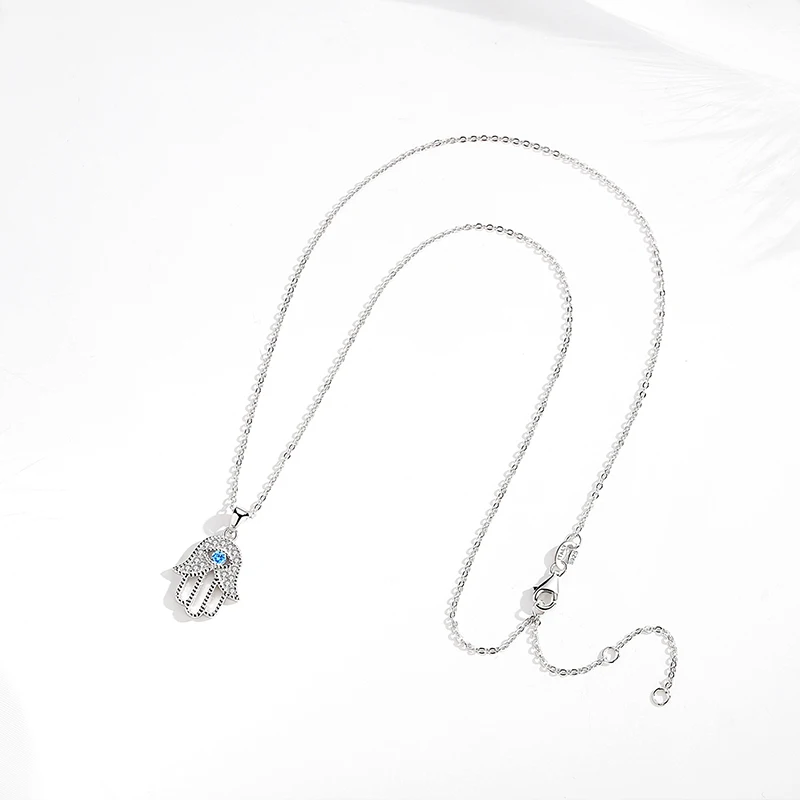 Ожерелье KALETINE с кулоном хамса с турецким кристаллом и рукой сглаза, женское ювелирное изделие из стерлингового серебра 925 пробы, цепочка с ажурным плетением до ключиц