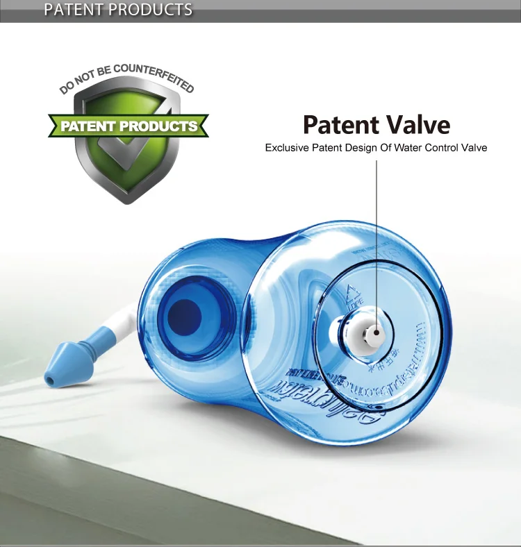 4. Правильная осанка: Держите верхнюю часть тела, наклоняясь вперед, с видом вниз и слегка наклоняясь головой, удерживайте бутылку вверх дном и аккуратно вставьте кончик в одну ноздрю. Расслабьтесь, слегка открывайте рот и Дышите (через рот). Не задерживайте дыхание, не пропускайте дыхание через нос. Нажмите кнопку клапана в нижней части бутылки с водой (рис. 1), и раствор будет автоматически течь. Не выдавливайте бутылку воды. Раствор в краску войдет в ноздрю и протирает нос и пазуху, а затем выведет из другой ноздри. После завершения стирки одна Ноздря отпустите кнопку, чтобы остановить раствор. Поверните, чтобы помыть оба Ноздря.