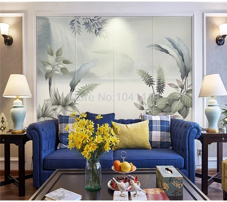 Пользовательские фото обои 3D растительный лист росписи гостиной ТВ диван спальня фон Настенный декор Современные Простые росписи