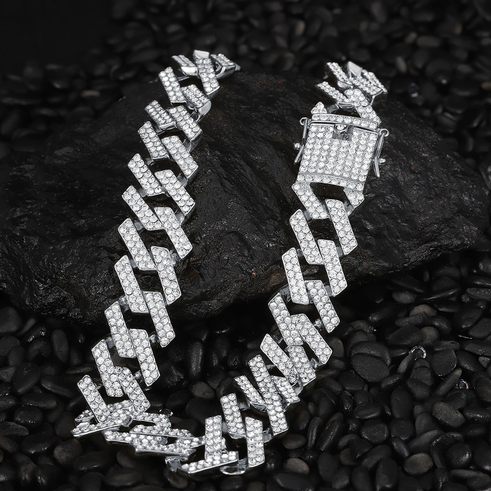 Цепь мужская из кубинской цепи, украшение в стиле хип-хоп, украшение с закрепкой 20 мм, 2 ряда, сверкающая, для мужчин