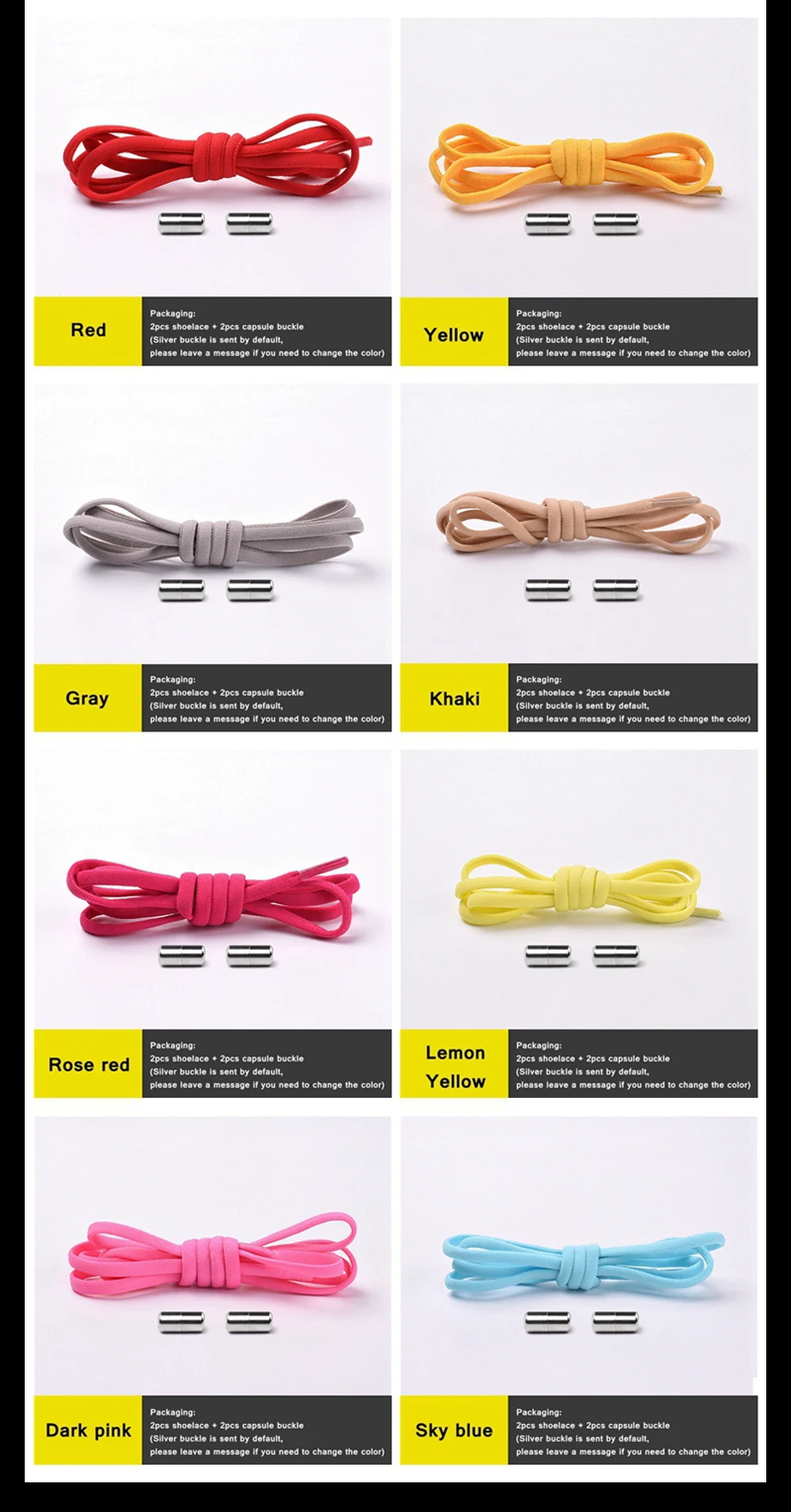Эластичные шнурки 1 пара, круглые, с металлическим замком, без завязок, удобные и безопасные, для ленивых обуви, аксессуары для кроссовок