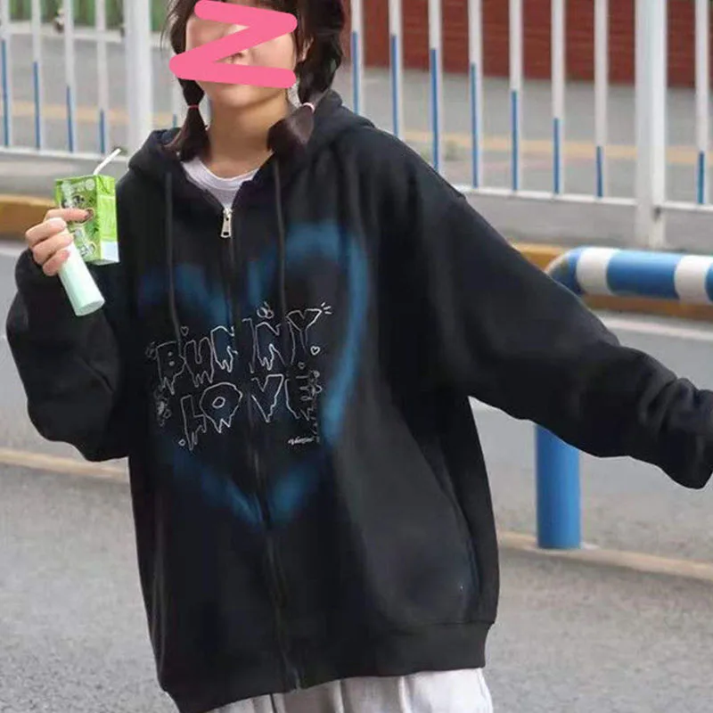 Свободная Толстовка Y2K в Корейском стиле Харадзюку на молнии с кап...