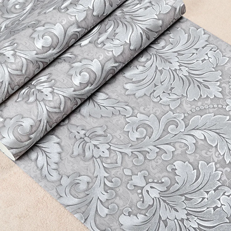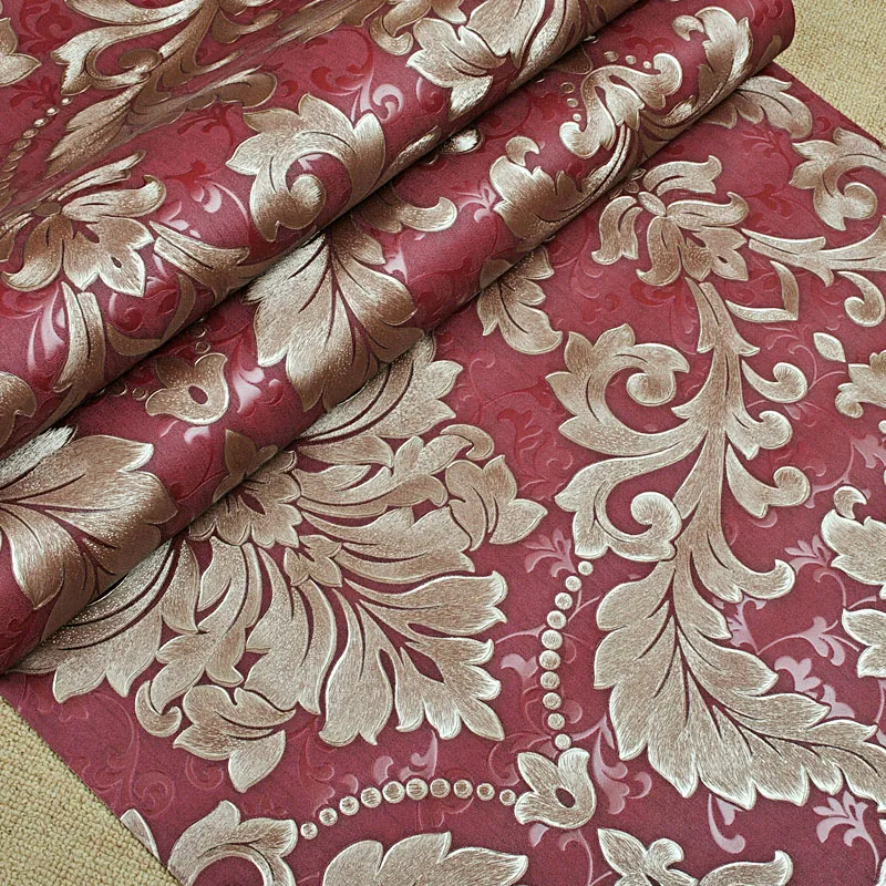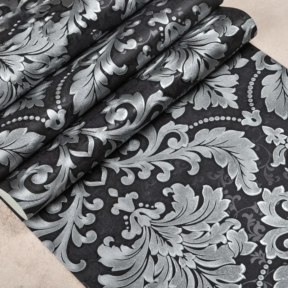 Роскошные современные металлические 3D Виниловые обои с Дамасским узором, рулон обоев для спальни, гостиной, серебристо-серый, черный, красный, коричневый