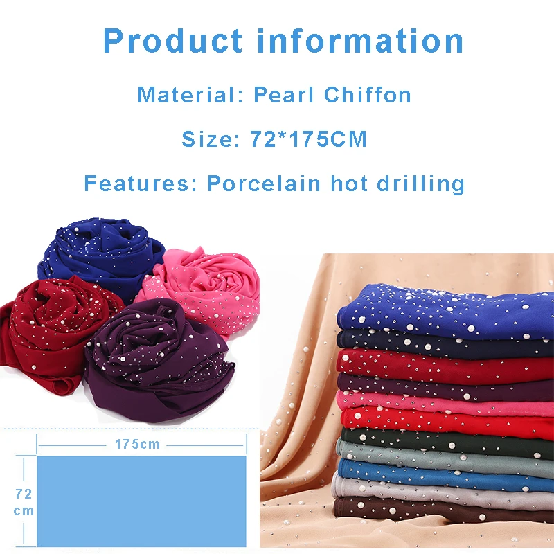 Роскошный перламутровый шифоновый хиджаб под шарф с сверлом мусульм...