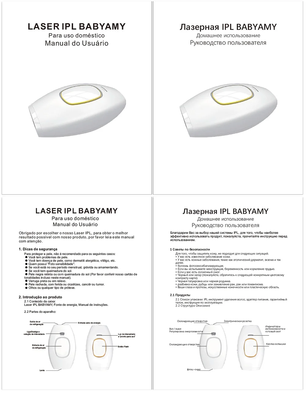 Упаковочный лист: 1 мини-устройство для удаления волос 1 х адаптер питания UK EU US AU Plug 1 x Руководство пользователя (английский, русский, португальский, датский, китайский)