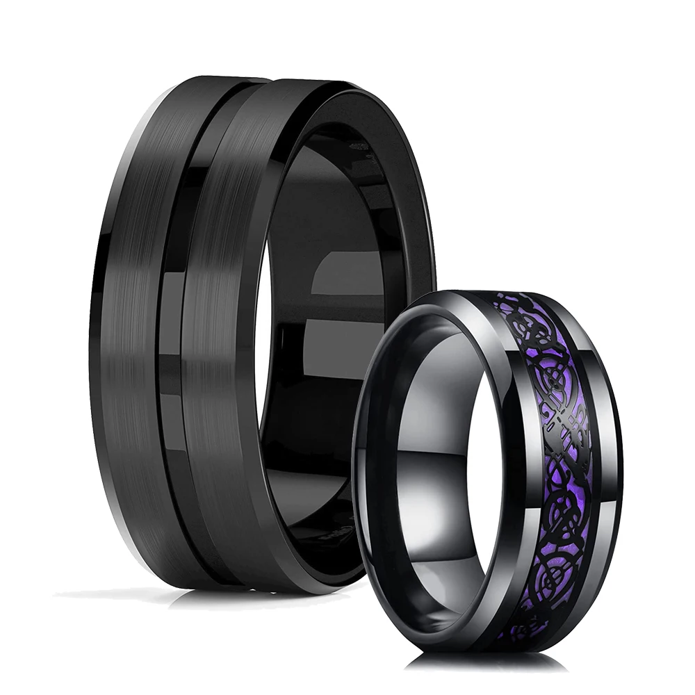 Новые трендовые 8 мм черные канавки скошенные края черные вольфрамовые свадебные кольца кельтского дракона для мужчин и женщин мужские инкрустационные фиолетовые кольца из углеродного волокна