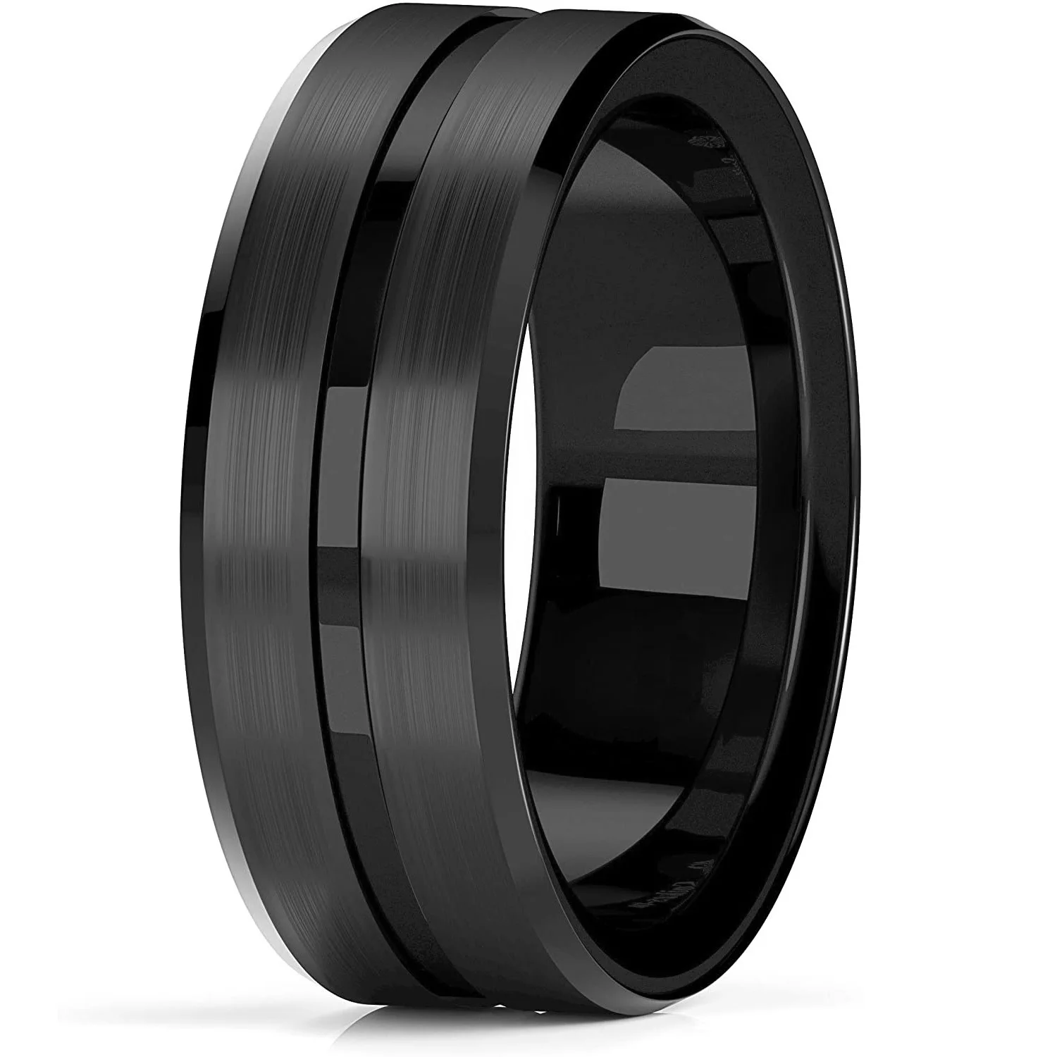 Item Style19Men's Black Groove Beveled Edge Tungsten Carbide Ring