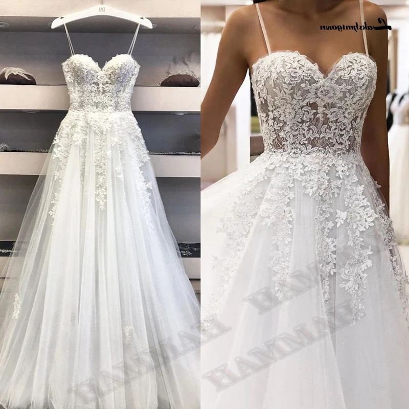 KeywordsSpaghetti Strap Sweetheart Wedding Dresses Gown Appliqued Pleat Sposa Illusion Vestidos Bridal Party Robe De Mariée