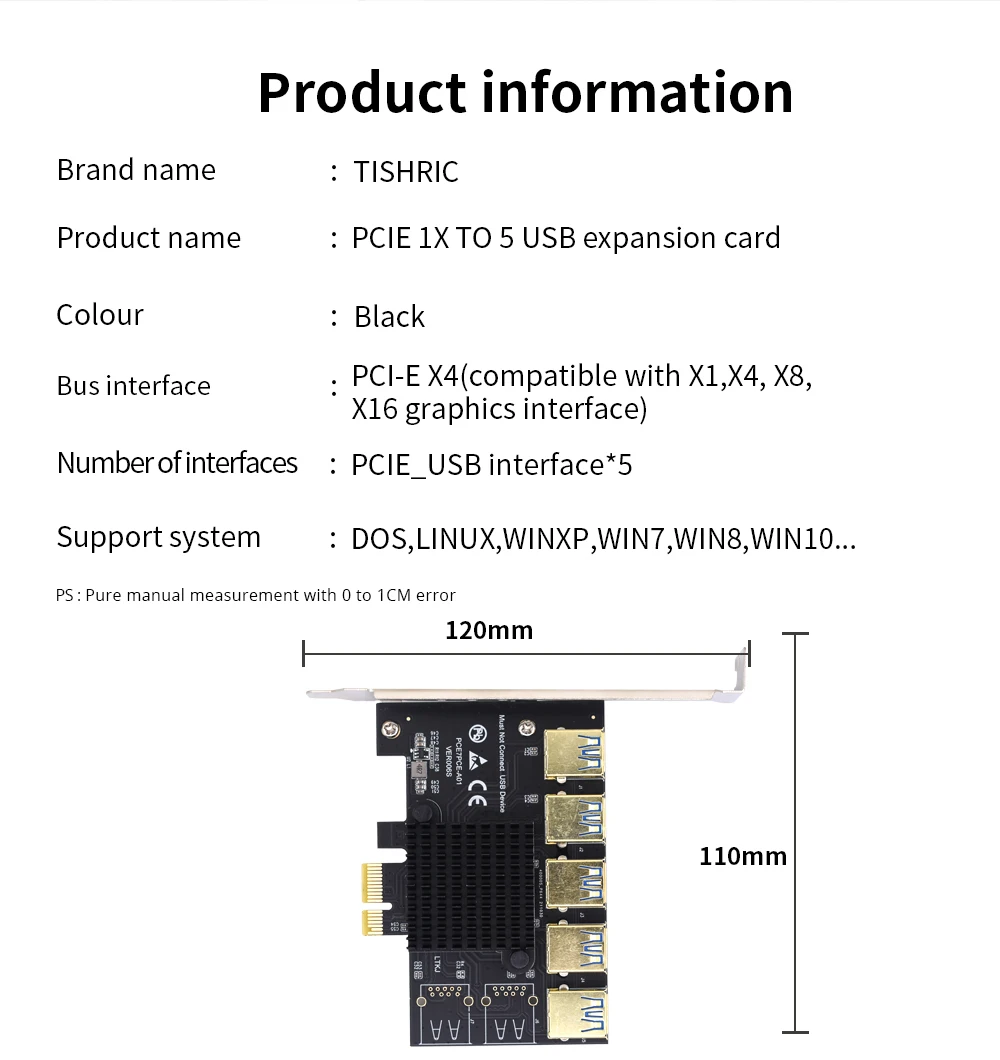 Funtion 2PCIE 1X TO 5/6 USB Expansion card