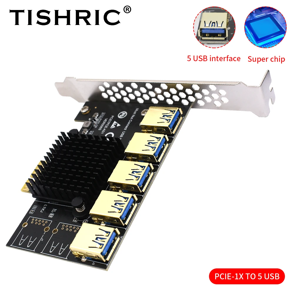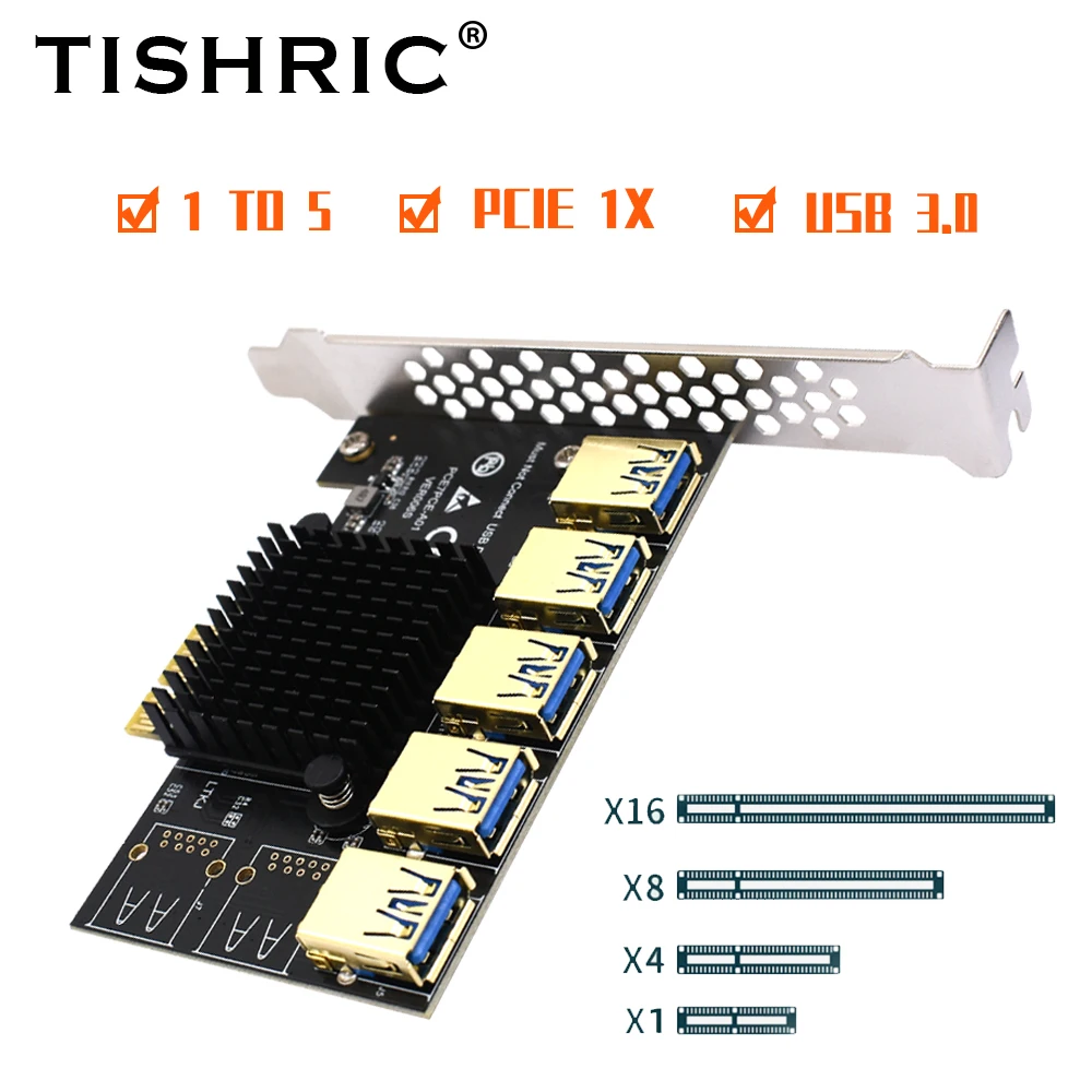 TISHRIC PCI Express мультипликатор PCIE 1X до 5/6 USB плата расширения Riser PCI Express X16 конвертер Riser 009s для майнинга биткойнов