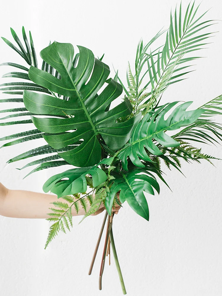 Искусственные растения монстеры, искусственные растения, тропические Пальмовые Листья, Летняя тема джунглей для дома, гавайский Свадебный декор, 5 шт.