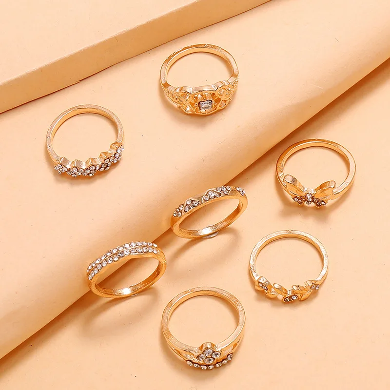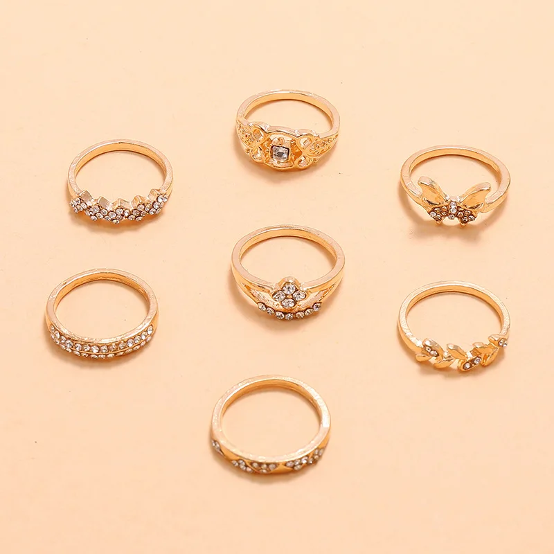Женское Винтажное кольцо в богемном стиле, Набор Колец золотого цвета в форме звезды, Луны, бабочки, с цирконом, в форме цветка, листа, простые аксессуары для суставов