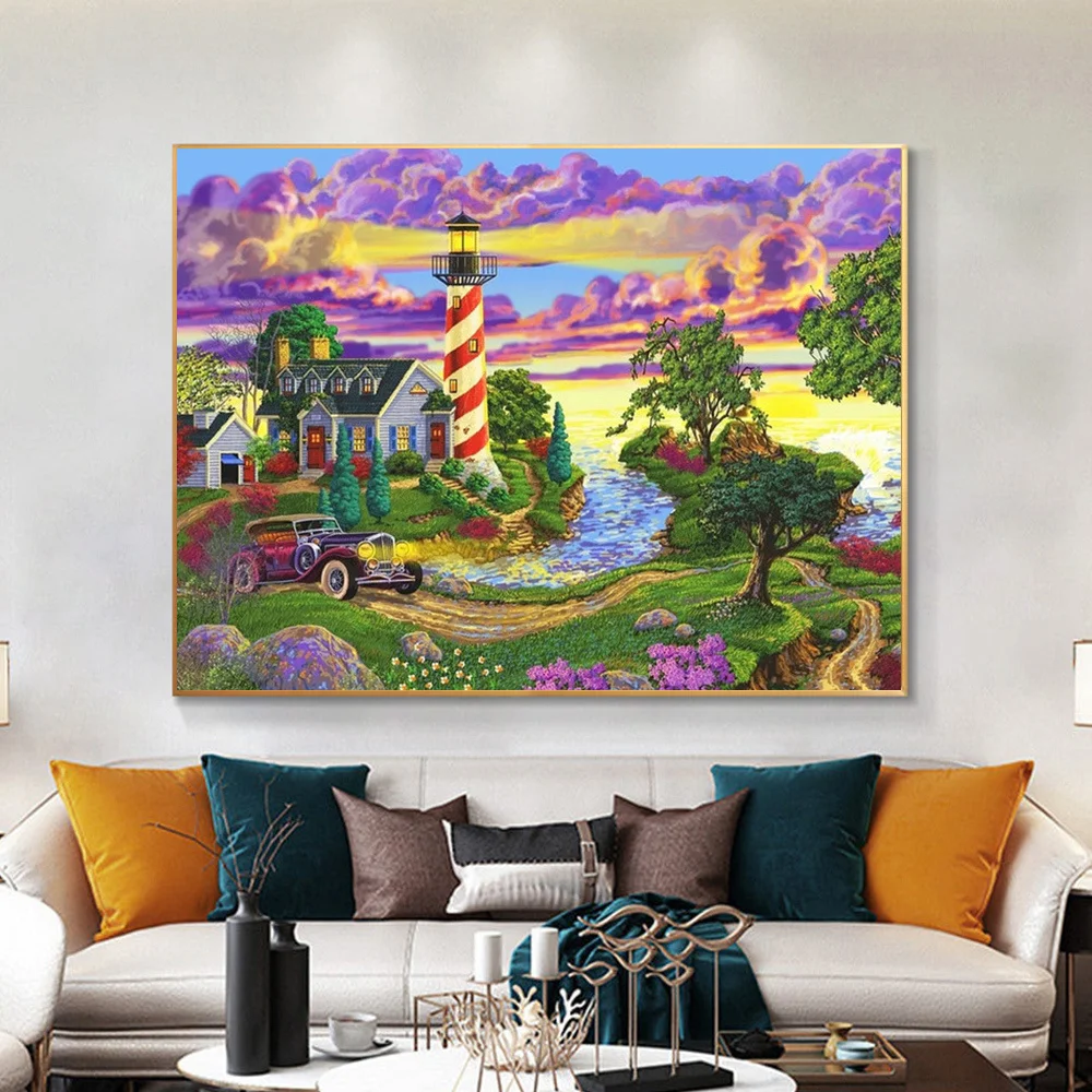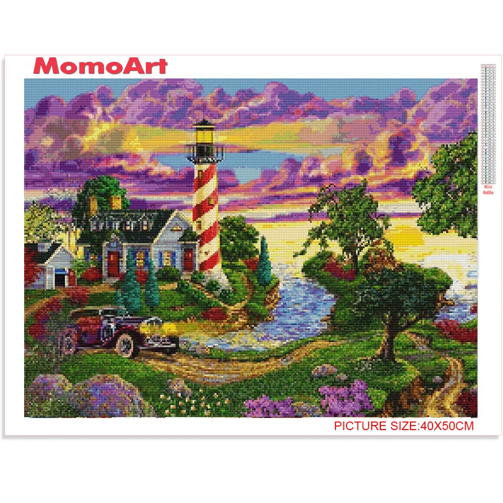 MomoArt Вышивка крестиком, алмазная живопись, маяк 5D, своими руками, вышивка Ландшафтная мозаика с бриллиантами House, Приморская стразы, настенное искусство