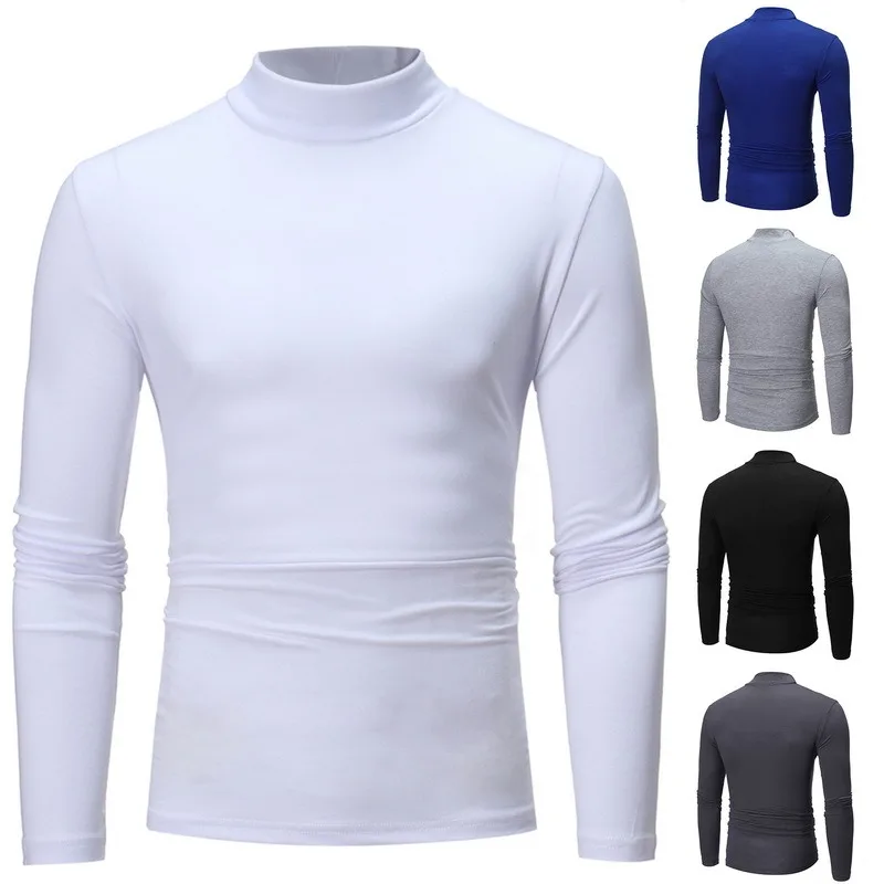Зимнее теплое модное термобелье с воротником средней высоты, Мужская Базовая простая футболка с ложным воротником, блузка, пуловер, Модный Топ с длинным рукавом
