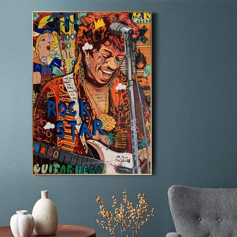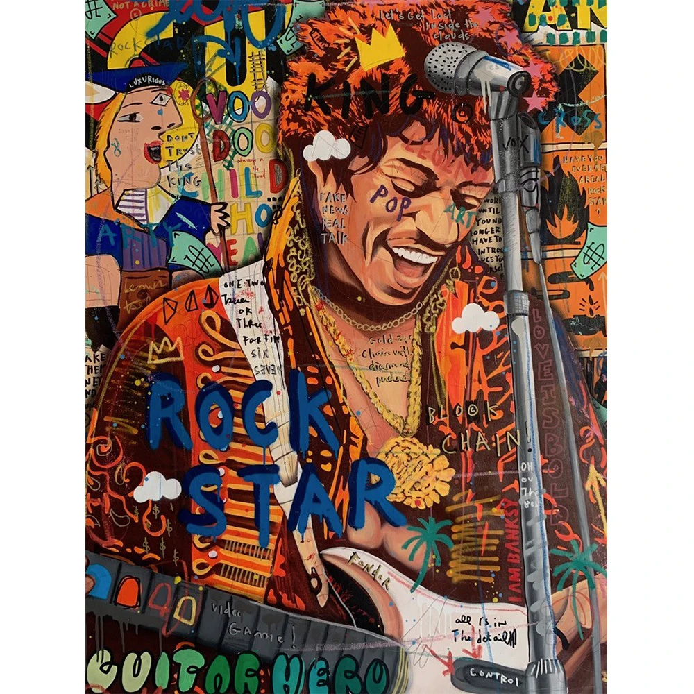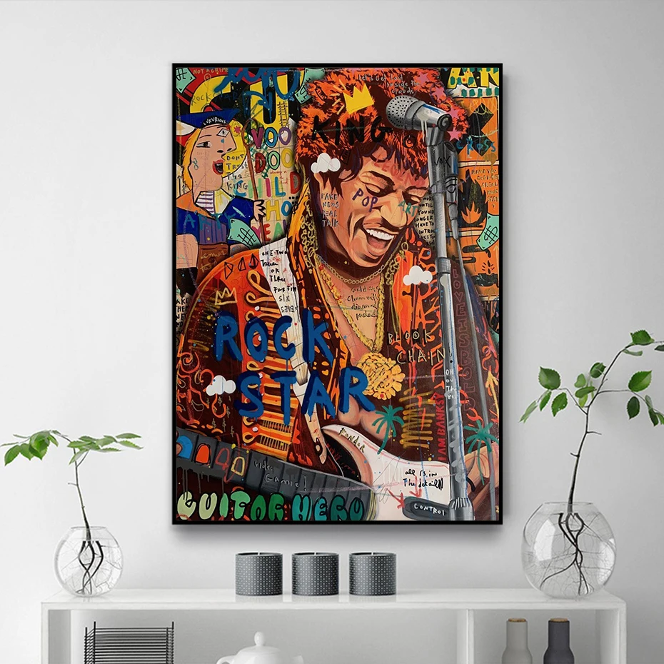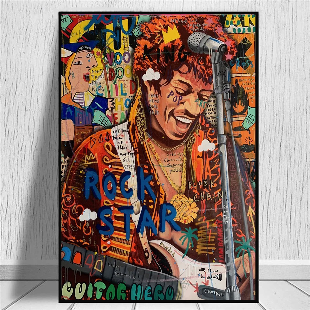 Картина на холсте с изображением уличной поп-арт граффити, постер с изображением знаменитой рок-звезды Джини Хендрикс, картина с HD-изображением для украшения гостиной