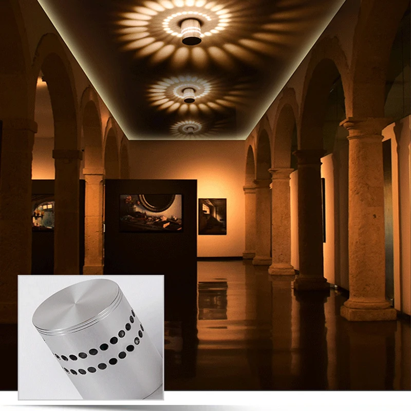 Он производит красивый 360 градусов спираль эффект светильник на стене или потолке.