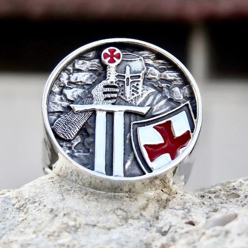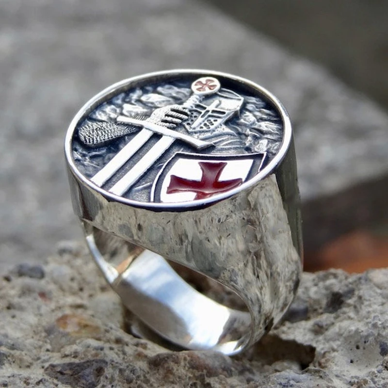 Винтажные рыцарские кольца с красным крестом, мужские вечерние кольца в стиле хип-хоп рок-байкерском стиле, металлическое кольцо, модные ювелирные аксессуары, подарки