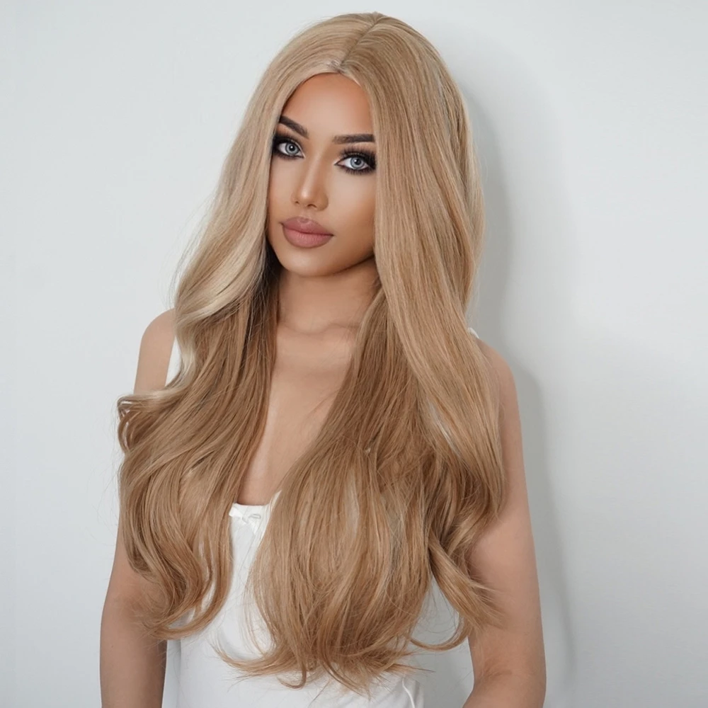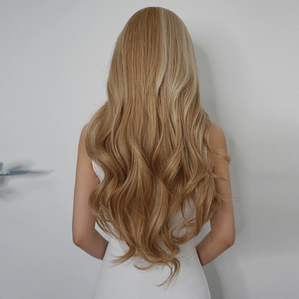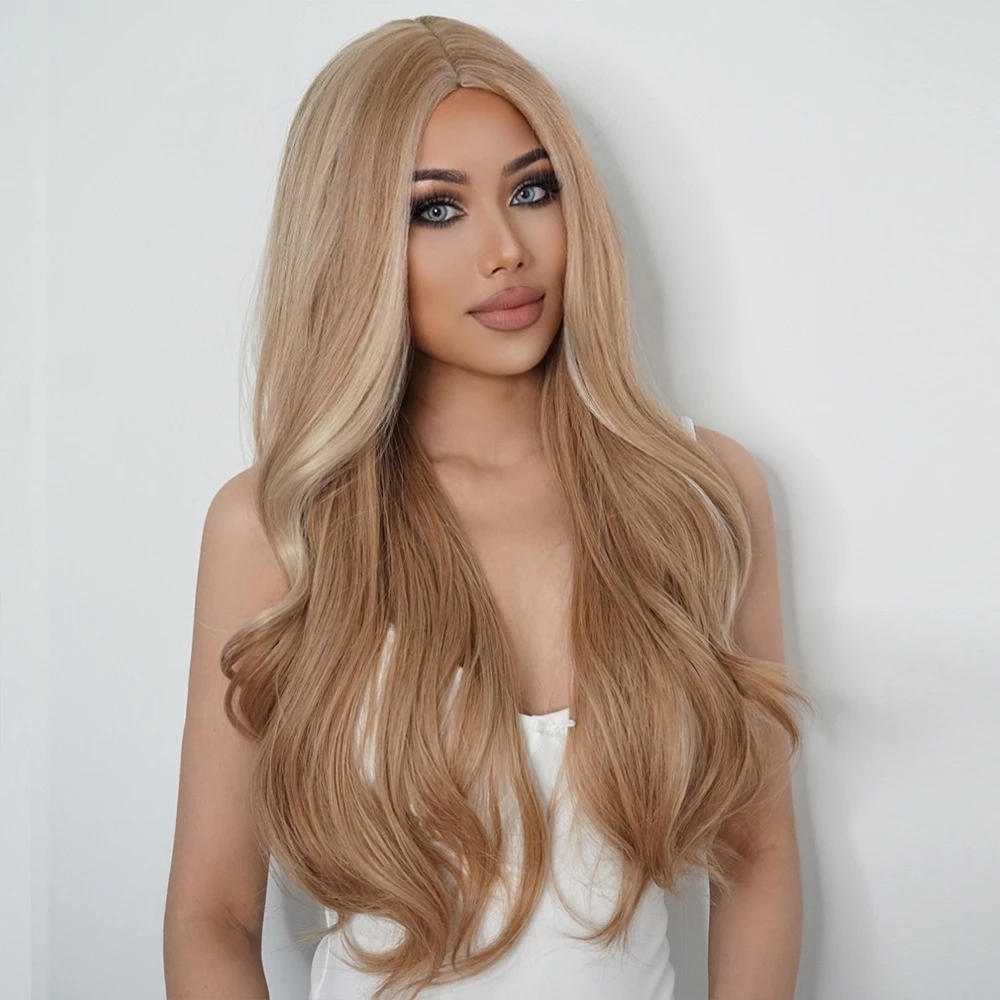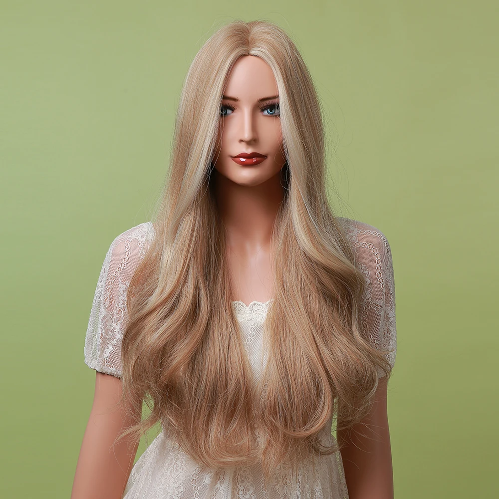 Женские синтетические парики с эффектом омбре Генри маргу, Длинные Платиновые светлые волосы для косплея средней части, термостойкие волнистые волосы
