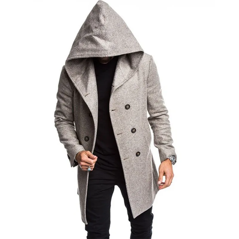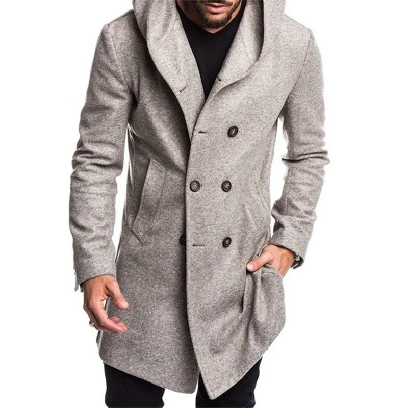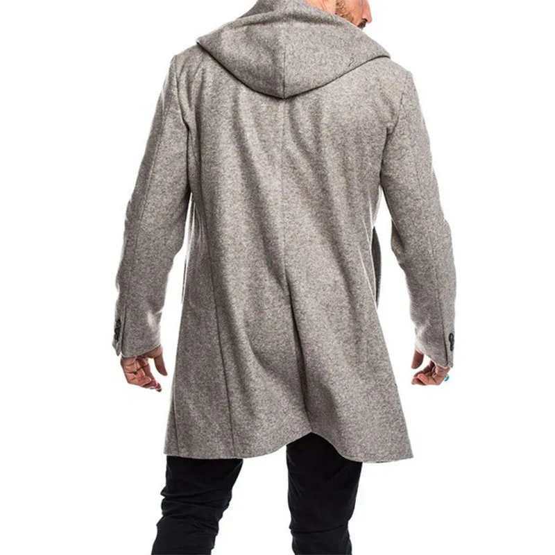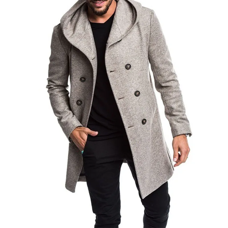 Длинное пальто, мужское повседневное пальто с капюшоном, мужская осенне-зимняя куртка, Мужское пальто из смешанной шерсти