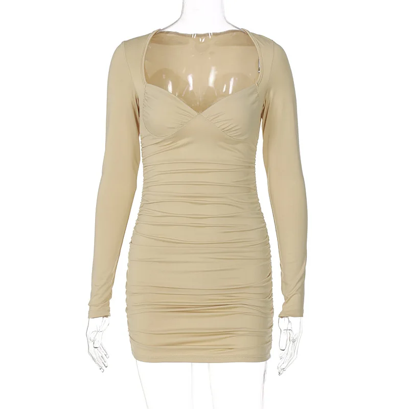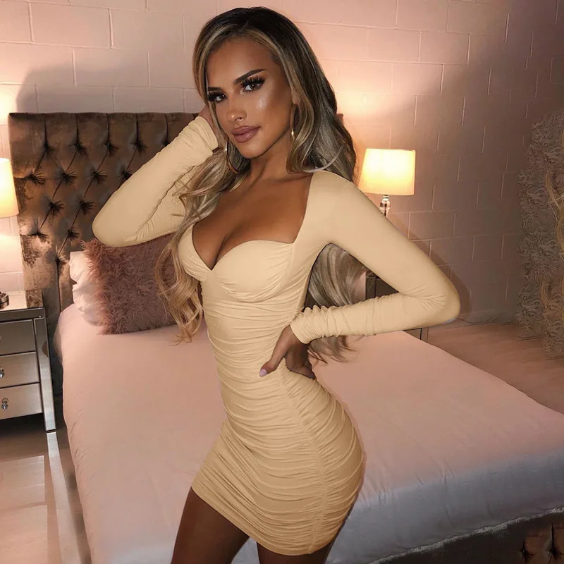 Осеннее однотонное мини-платье для женщин, сексуальное хипстерское облегающее вечернее платье с длинным рукавом, женская одежда для улицы, Новинка