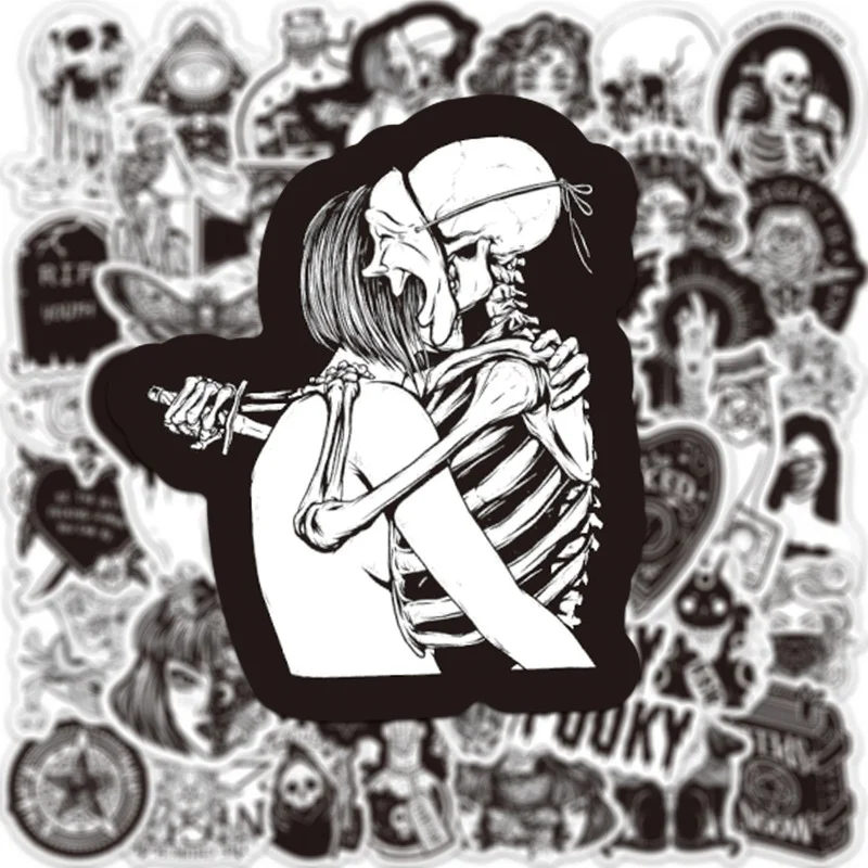 50 шт. Готический черно-белый граффити-наклейка с черепом ведьмы са...