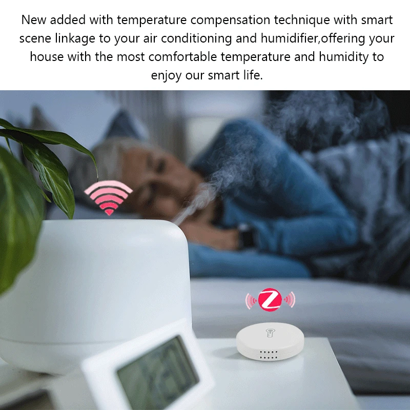 4. Новые добавлены с технологией компенсации температуры с Умной связью сцены с вашим кондиционером и увлажнителем воздуха, предлагая вашему дому с наиболее удобной температурой и влажностью, чтобы наслаждаться нашей умной жизнью.