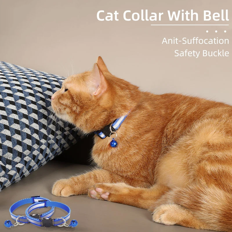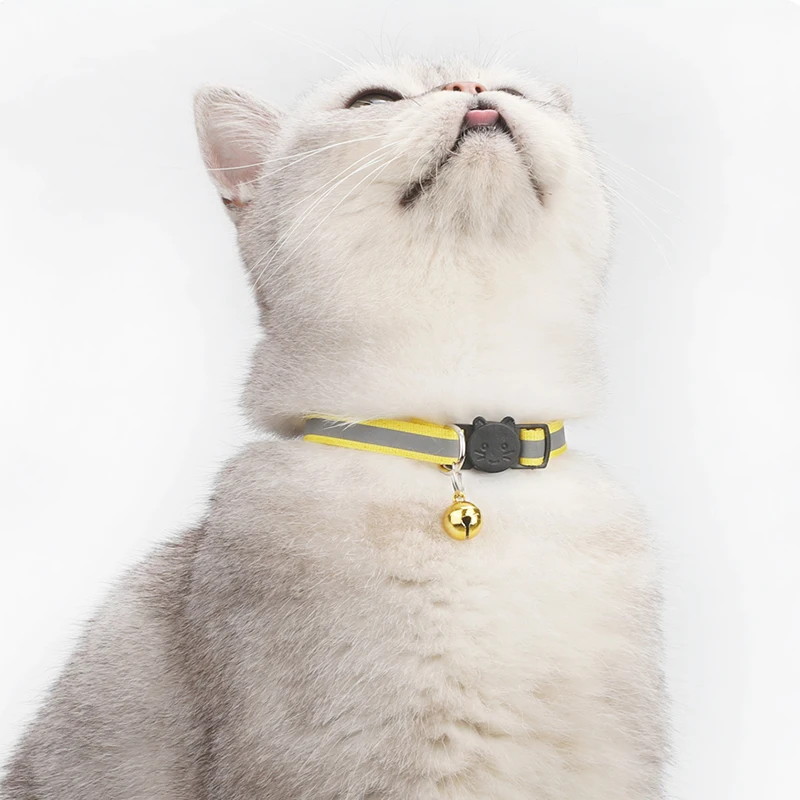 Ошейник для кошек с колокольчиками, регулируемое ночное отражение, голова кошки, нейлоновая безопасная пряжка, цвет, модные аксессуары для кошек, домашних животных