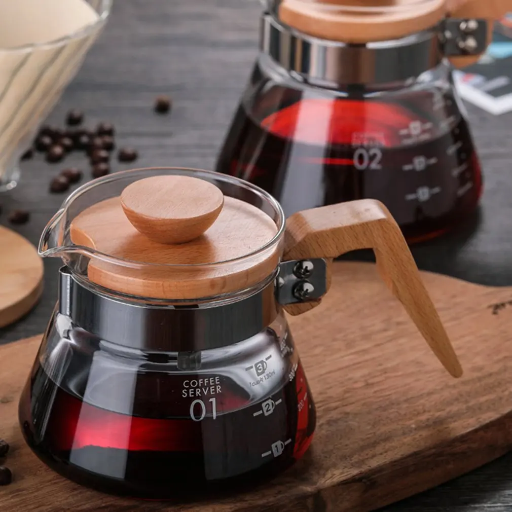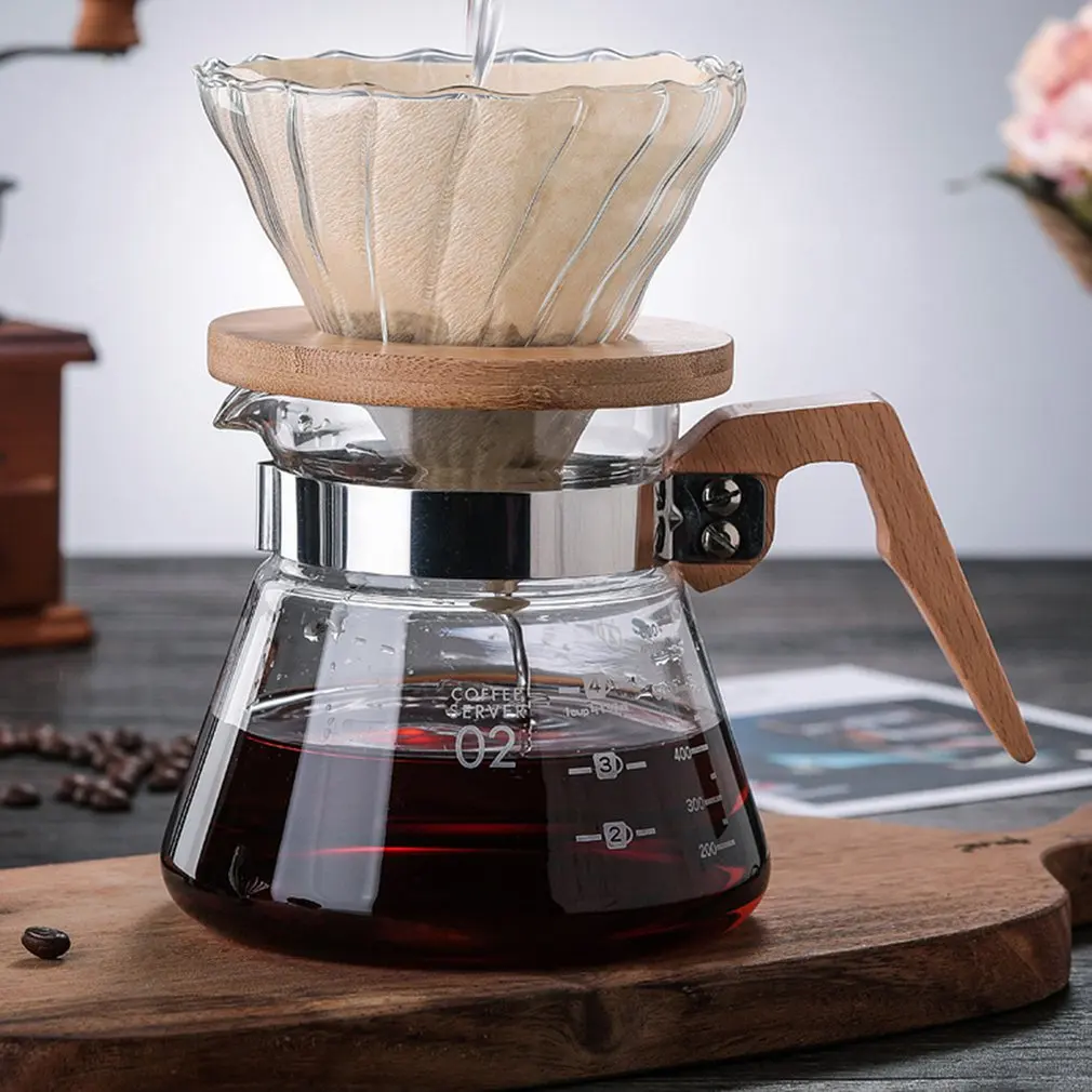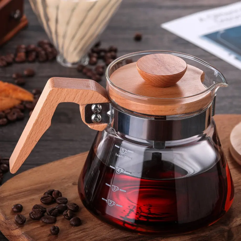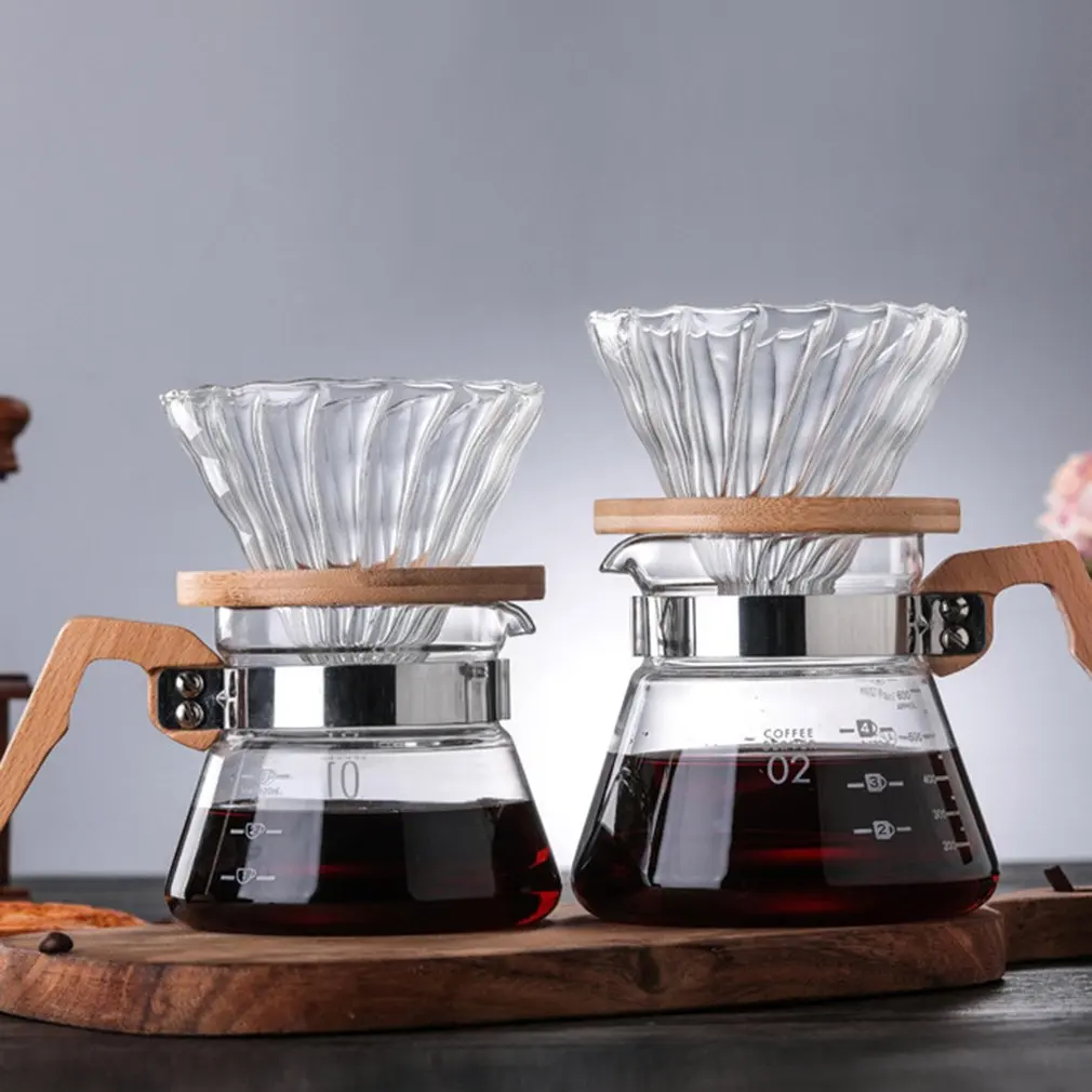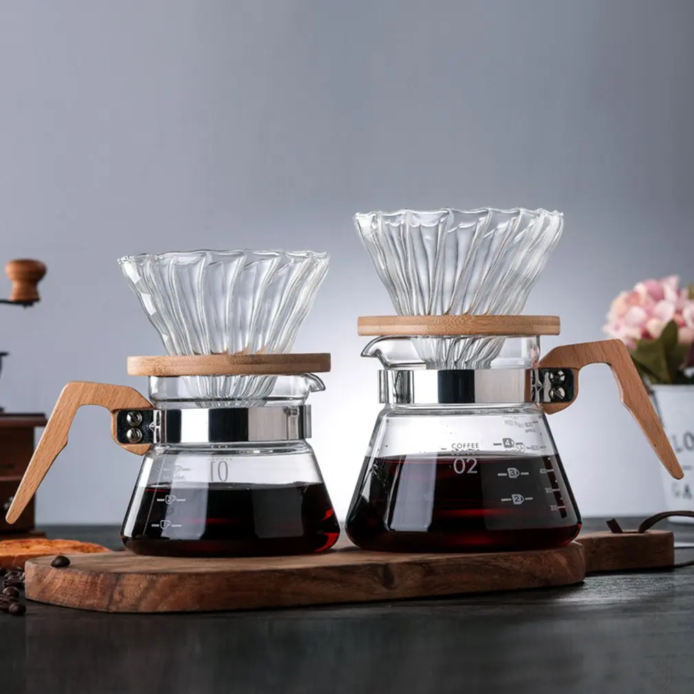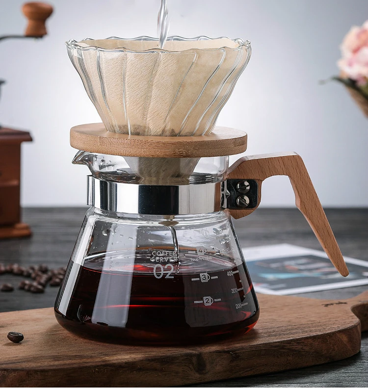 Стеклянная кофеварка с деревянной ручкой, ручная капельная Кофеварка, капельница для выпечки, стеклянный кофейник, прозрачный чайник