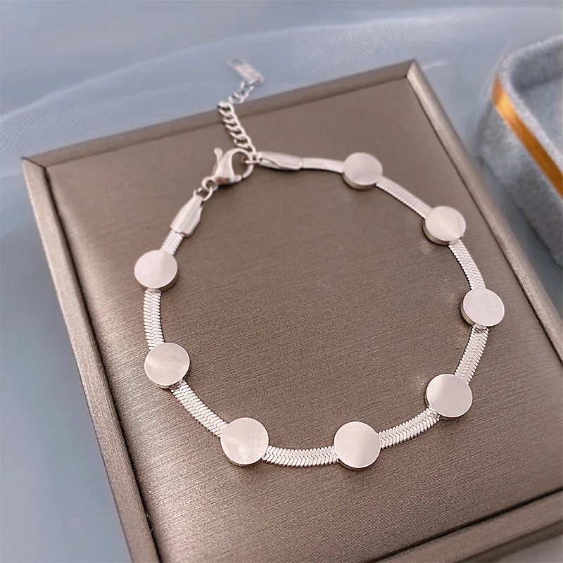 Круглый Женский браслет из нержавеющей стали 316L, яркий Яркий диск, женский светлый роскошный нишевый браслет, новинка 2021