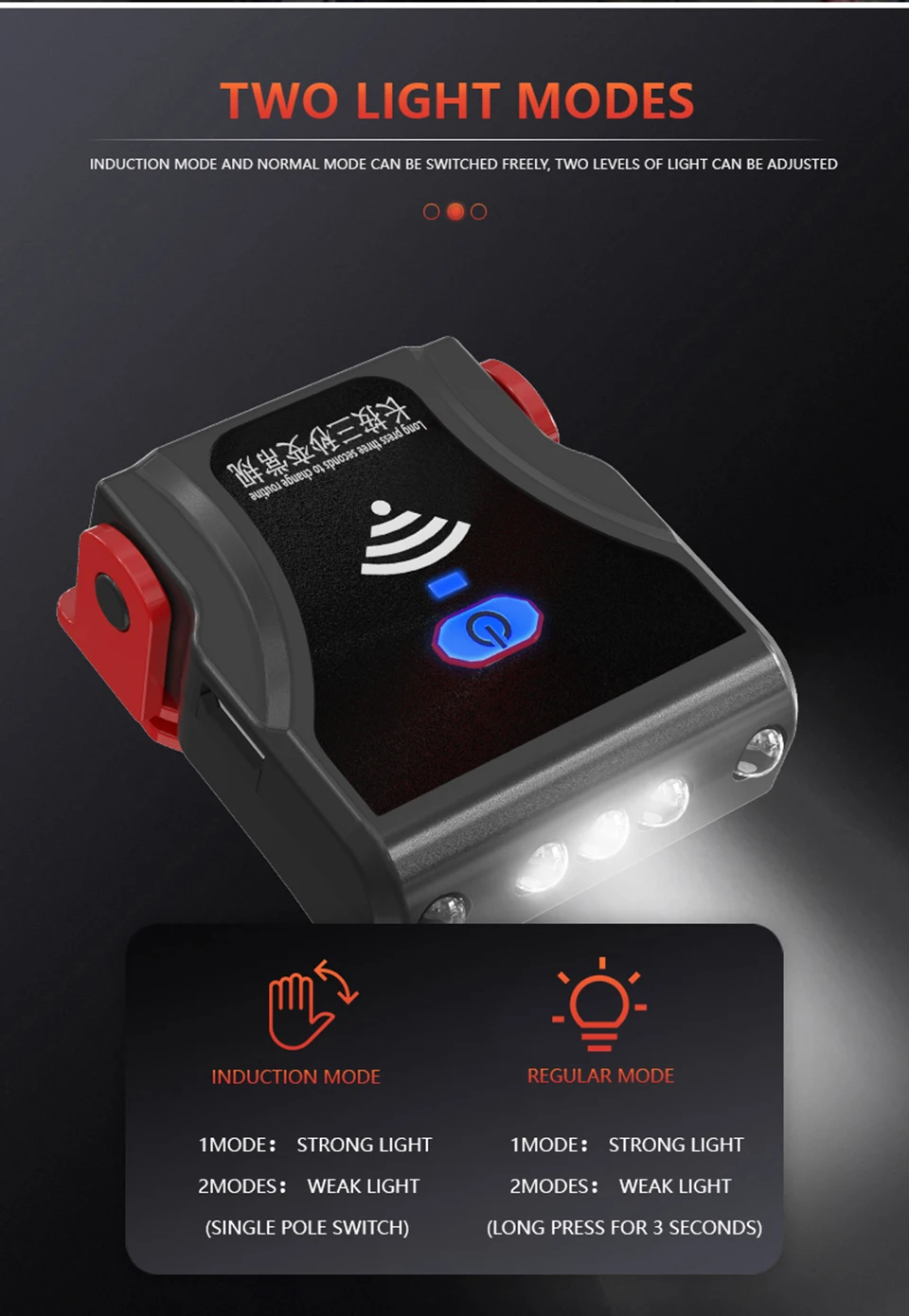 1. Индукционная фара на палец, когда ваша рука находится рядом с фарой в пределах 10 см, фара включится, когда вы оставите фару пальцем, она будет выключена.