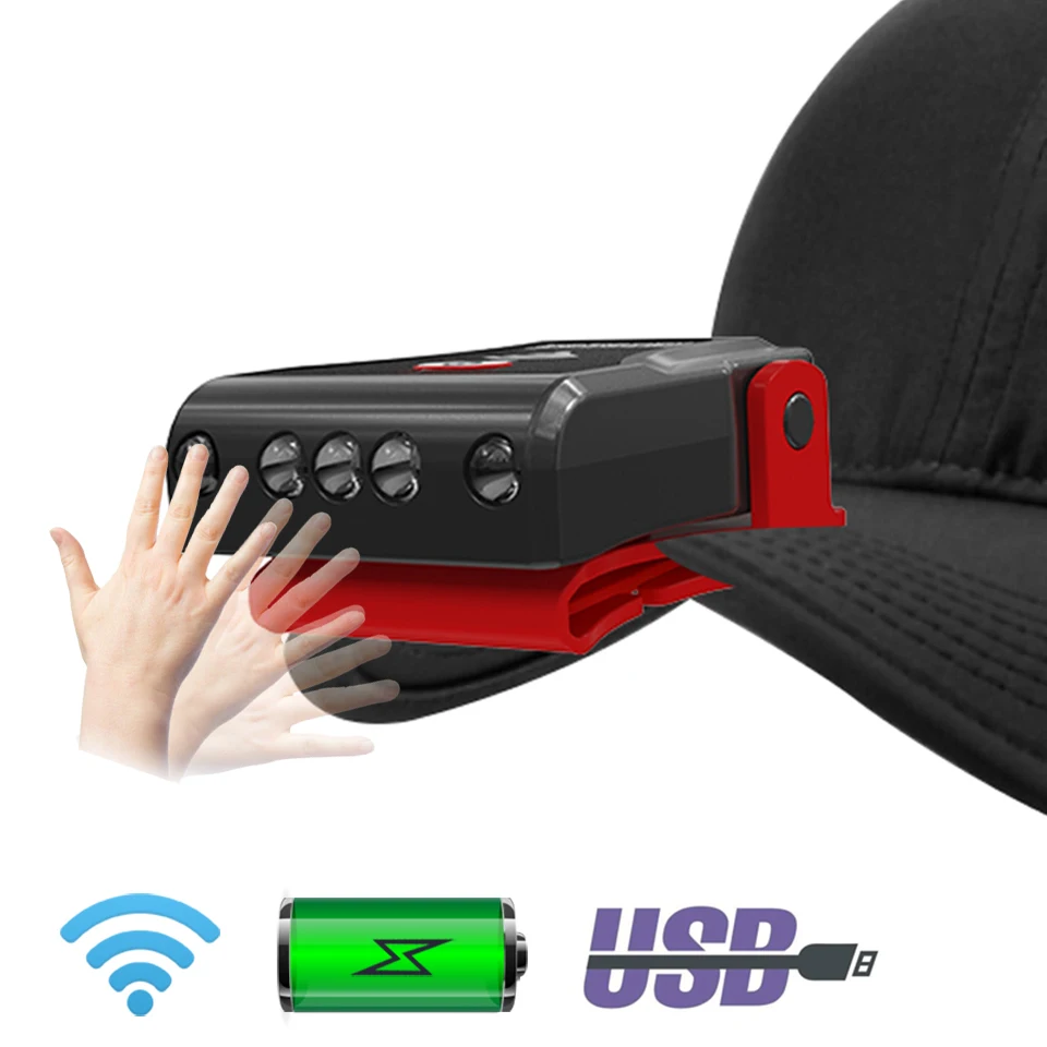 Светодиодная кепсветильник с датчиком пальца, Головной фонарь, нало...