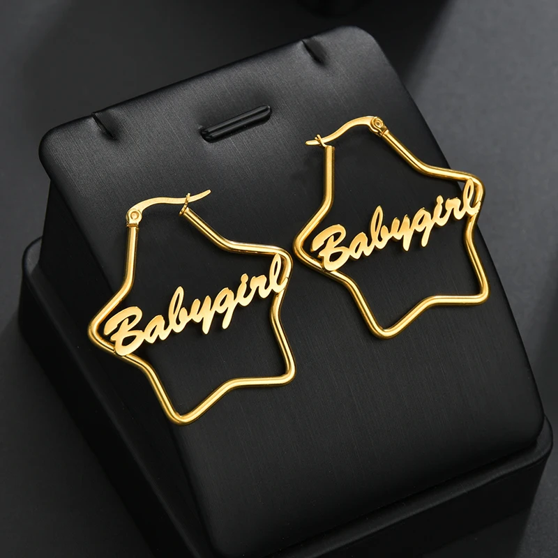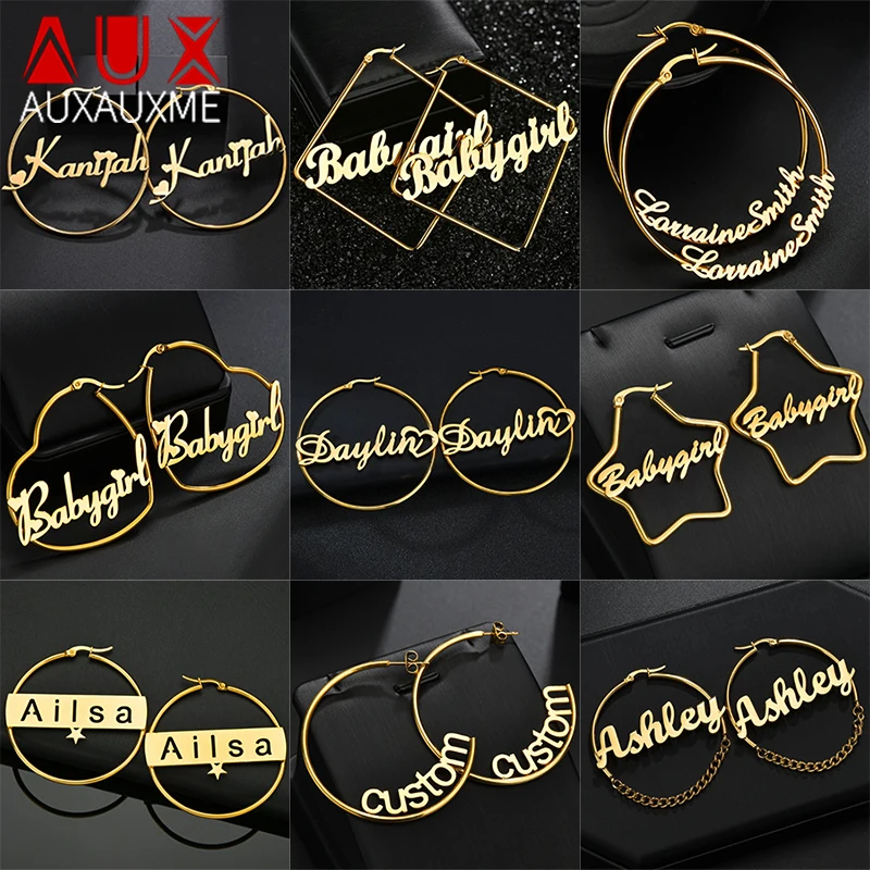 Auxauxme индивидуальные именные серьги из нержавеющей стали, персонализированная круглая сердечная серьга с табличкой для женщин и мужчин, вечерние ювелирные изделия, подарки