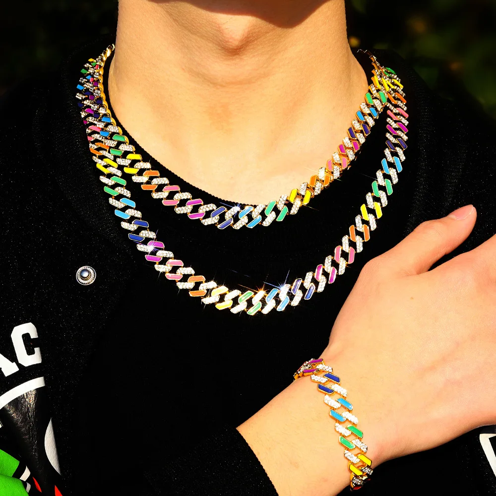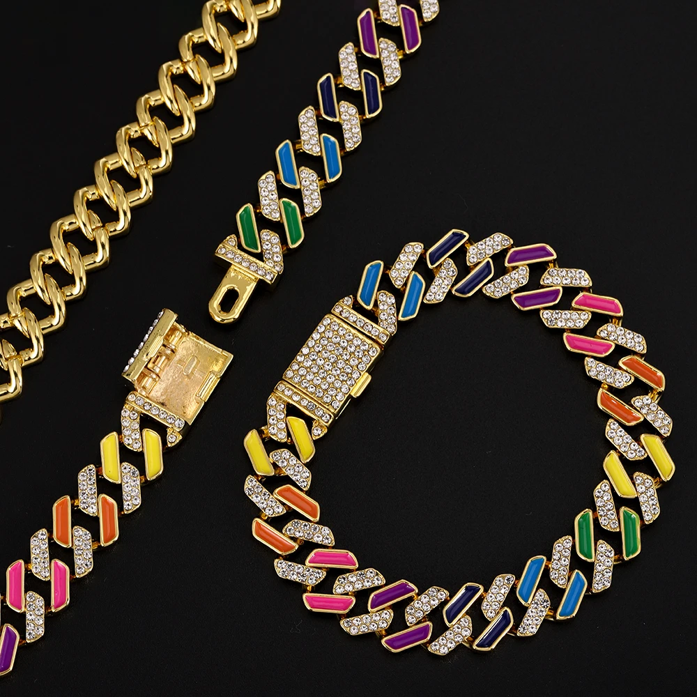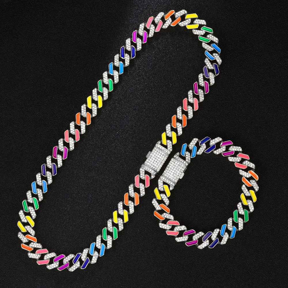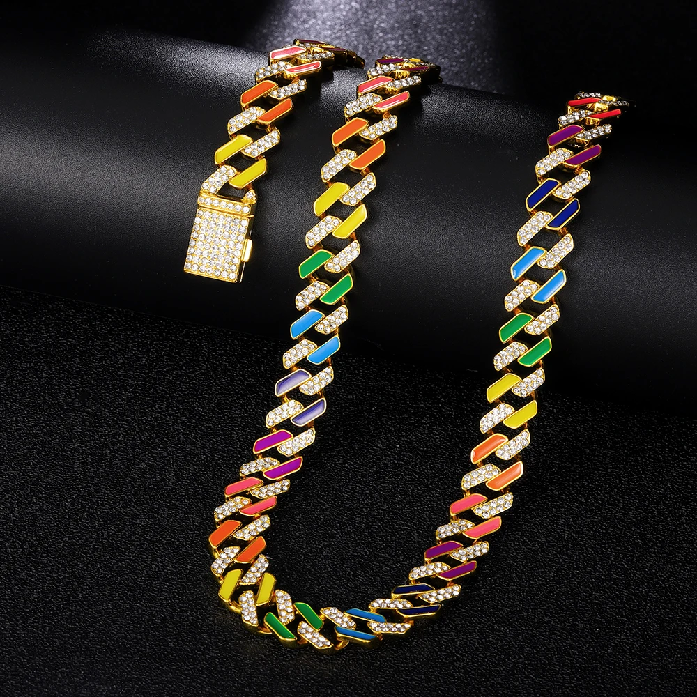 Цепочка женская из кубинской эмали, неоновая цепочка с кристаллами, ожерелье-чокер, браслет, ювелирные изделия, 13 мм