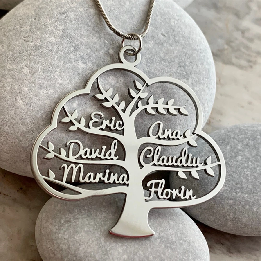 Ожерелье с именем на заказ, ожерелье с кулоном в виде дерева жизни, ожерелье из нержавеющей стали с именем для семьи, Рождественский подарок