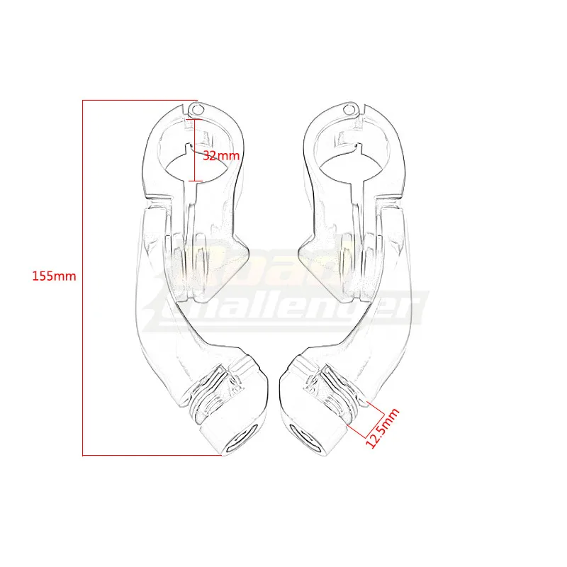 Спецификация: Состояние: 100% новый 1 пара опора для защиты двигателя (левая и правая) Размер: как показано на картинке Длина стопы: как на фотографии Монтажный диаметр: 1 1/4 "(32 мм)(28 мм)(26 мм) Цвет: черный + хром Материал: сверхпрочный металл + резина Применимость: Универсальный подходит для 1-1/4 "(32 мм)(28 мм)(26 мм) шоссе защита двигателя Пакет включает в себя: