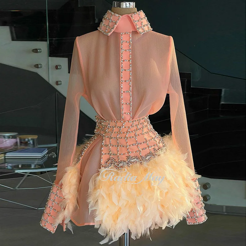 Роскошные Короткие коктейльные платья с кристаллами и перьями 2022,...
