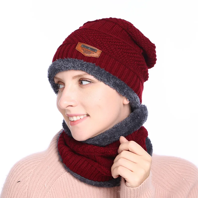 Мужская вязаная шапка, зимние теплые шапочки, женская модная повседневная шапка с утолщенным плюшевым шарфом, уличная одежда для велоспорта