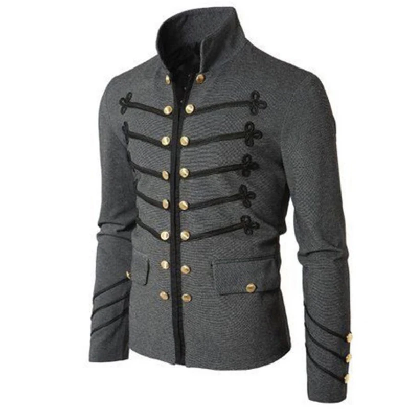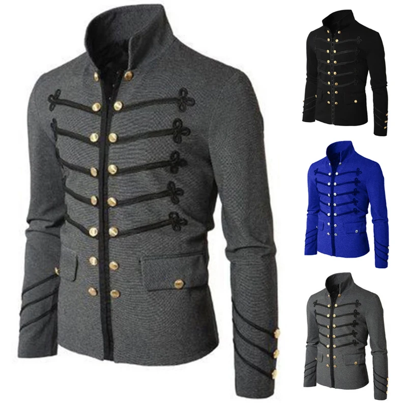 Мужская винтажная куртка в стиле милитари с вышивкой на пуговицах, однотонный топ, ретро-форма, вязаный кардиган, пальто с длинным рукавом, мужская одежда