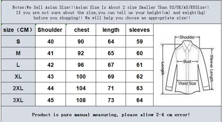 1. Товар Азиатский размер, на 1-2 размера меньше, чем евро/США,Пожалуйста, внимательно проверьте таблицу размеров2. Пожалуйста, учитывайте погрешность в 1-3 см из-за ручного измерения.3. Если вы не уверены в размере, пожалуйста, сообщите нам ваш вес, рост, бюст, информацию о талии и т. д., мы можем помочь выбрать правильный размер.